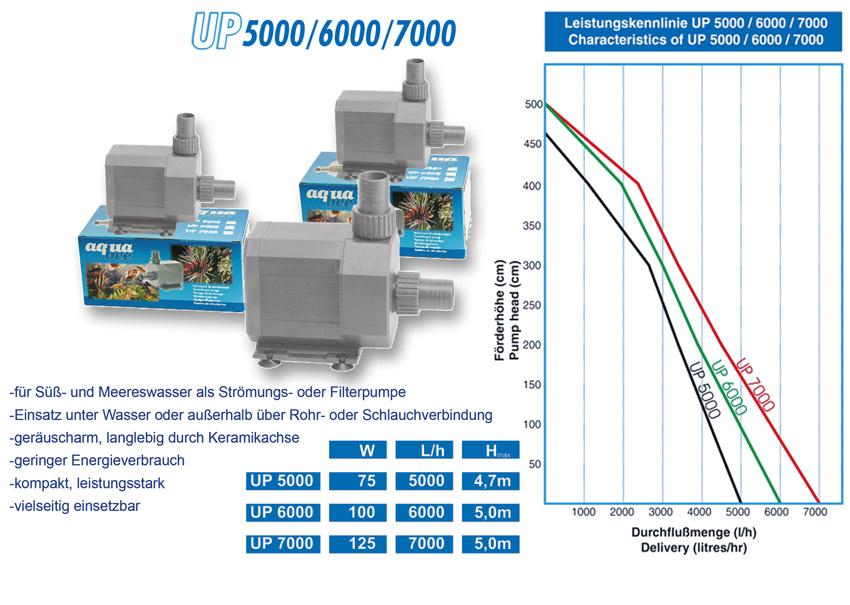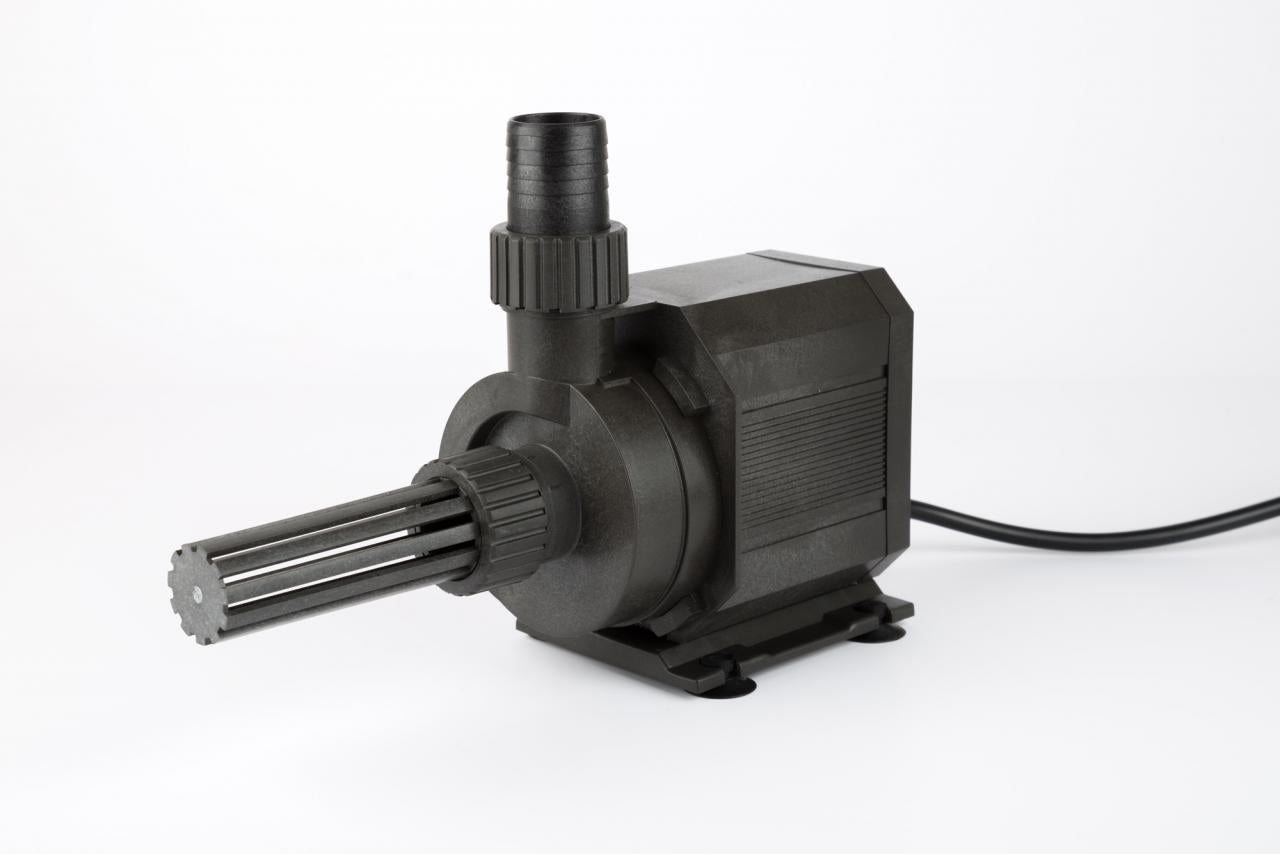 The UP 5000/6000/7000 series is based on our rotating synchronous motor technology. Due to the fixed direction of rotation of the rotor, this pump series is able to achieve a multiple delivery rate and water column than non-rotating pumps of the same size. The uncomplicated and very robust design of this pump means that an extremely long service life is inevitable. Due to the extraordinarily good performance of this pump series in terms of flow rate, water column and energy consumption, it can be used in a variety of ways, for example as return pumps or as flow pumps. The pump is made from selected materials. The shaft and plain bearing bushes are made of the hardest, durable ceramic. The aging-resistant and vibration-damping silicone bushings, in which the plain bearing bushes are enclosed, ensure very smooth running. We manufacture the impeller polycarbonate. The plastic polycarbonate has a far higher strength than other plastics. This makes the impeller extremely resistant.