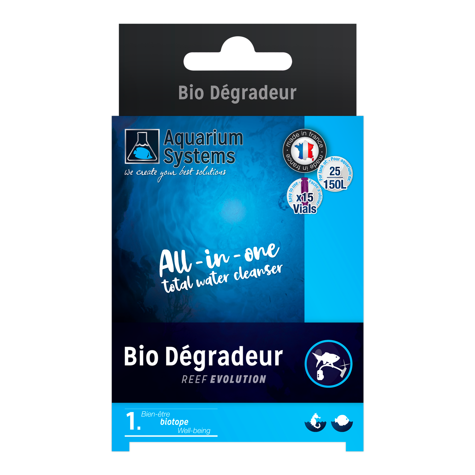 Reef Evolution BioDégradeur is the ideal product to seed your aquarium. It clarifies the water and limits the algae growth. It stabilises the biotope, which is indispensable for the well being of your Marine Aquarium, Freshwater aquarium or your small Pond.