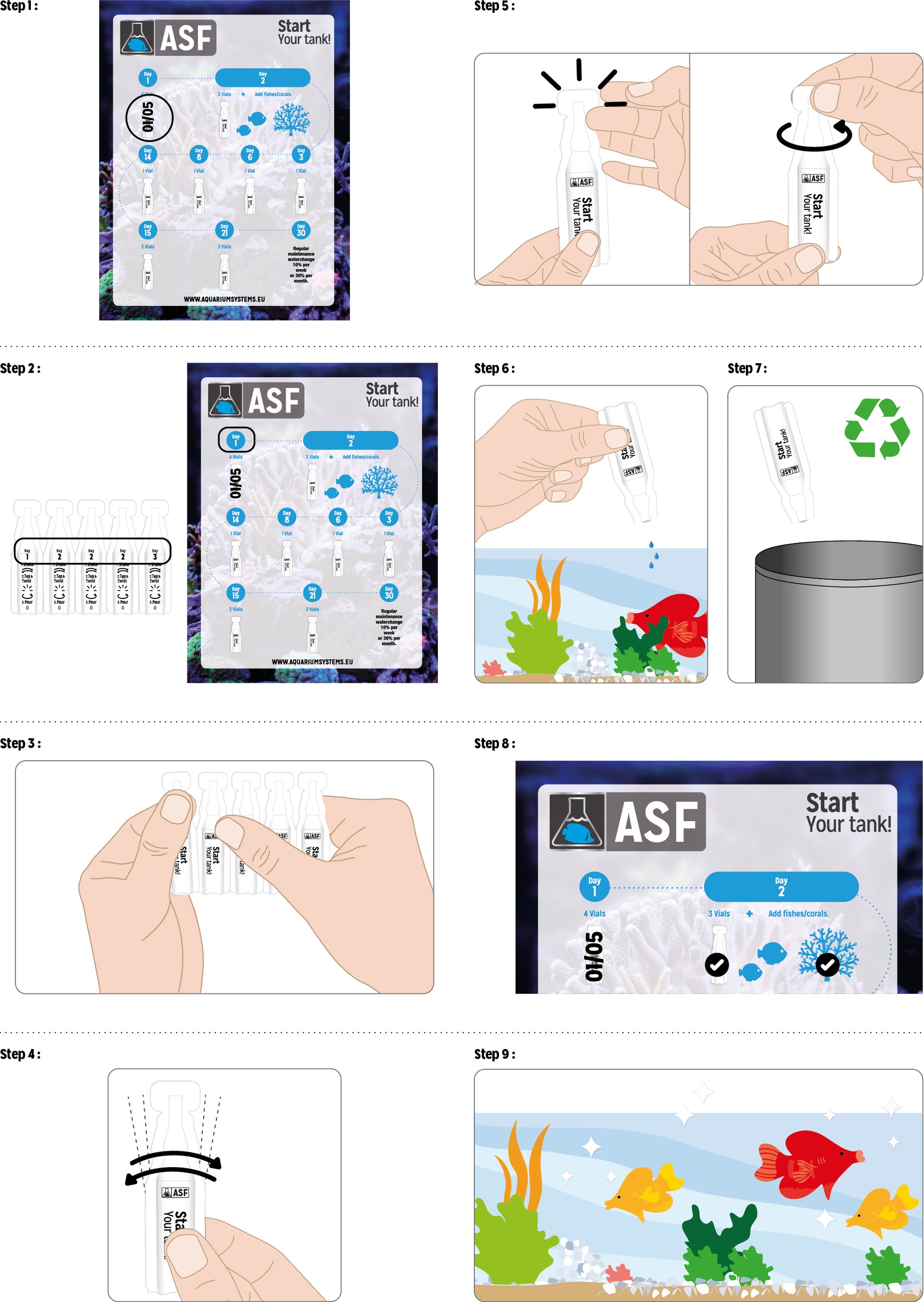 The Start Up Program is designed to cycle your tank with the pleasure of enjoying your fish within 2 days. This 30 day program will guide you through the steps to making your aquarium biologically balanced. Start the program with the first vial and then use easy to follow guide to achieve fantastic results. Once your aquarium is set up we strongly advise you to use our Maintenance Program, which will then result in a biological balanced, algae free and full of pleasurable aquarium.