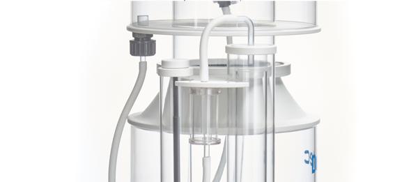 The innovative safety overflow feature introduced by Deltec automatically shuts off the air input if the water level inside the skimmer rises, preventing the skimmer cup from flooding.