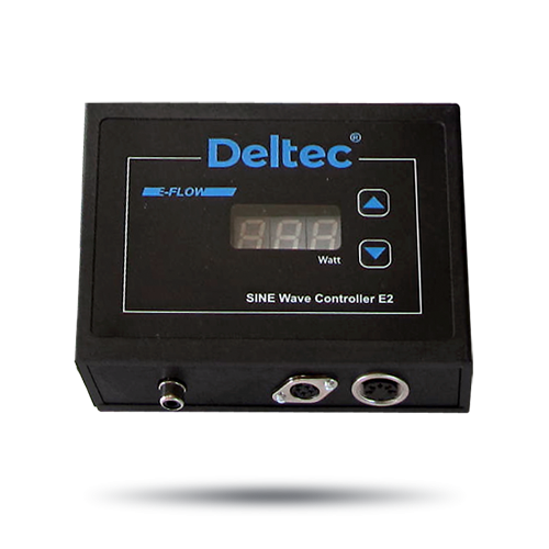 Deltec's flag ship series of true sine wave 24 volt pumps driven by brushless motors. The included controller can set power consumption and performance via a wattage display. The pump can either be installed inside or outside a sump. The new E-flow Pumps provide a high flow rate and pressure at low power consumption and are almost silent in operation.