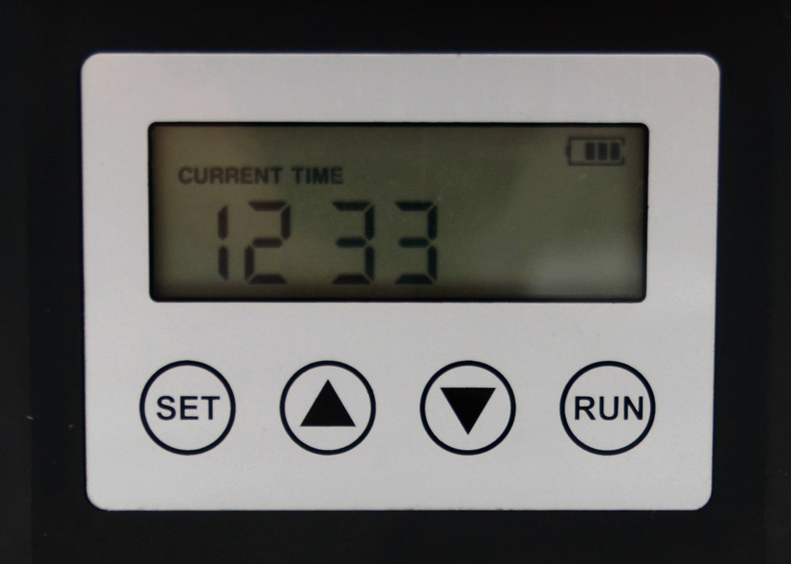 The intuitive touch-button LCD display allows you to schedule up to 6 feedings per day. Need to feed manually? Just press and hold the RUN button. A hinged clear cover protects the control panel from the elements and accidental changes.