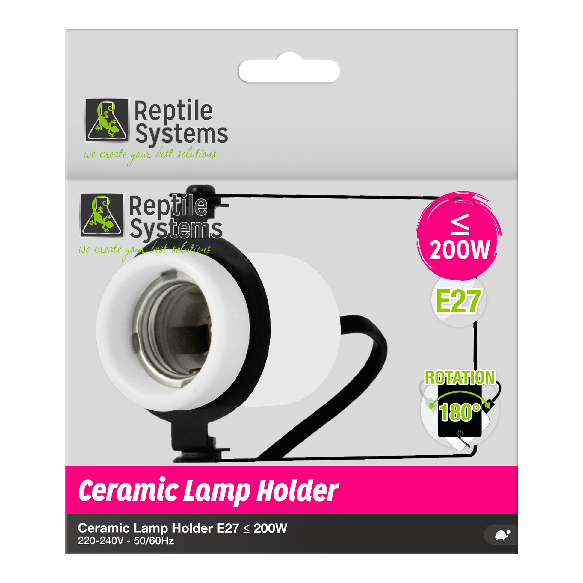The Reptile Systems Ceramic Lamp Holder is a highly versatile and durable fixture designed for safely mounting a wide range of reptile lighting and heating lamps. With a heat-resistant ceramic E27 fitting, it is compatible with most compact lamps, heat emitters, and UVB bulbs across various brands.
