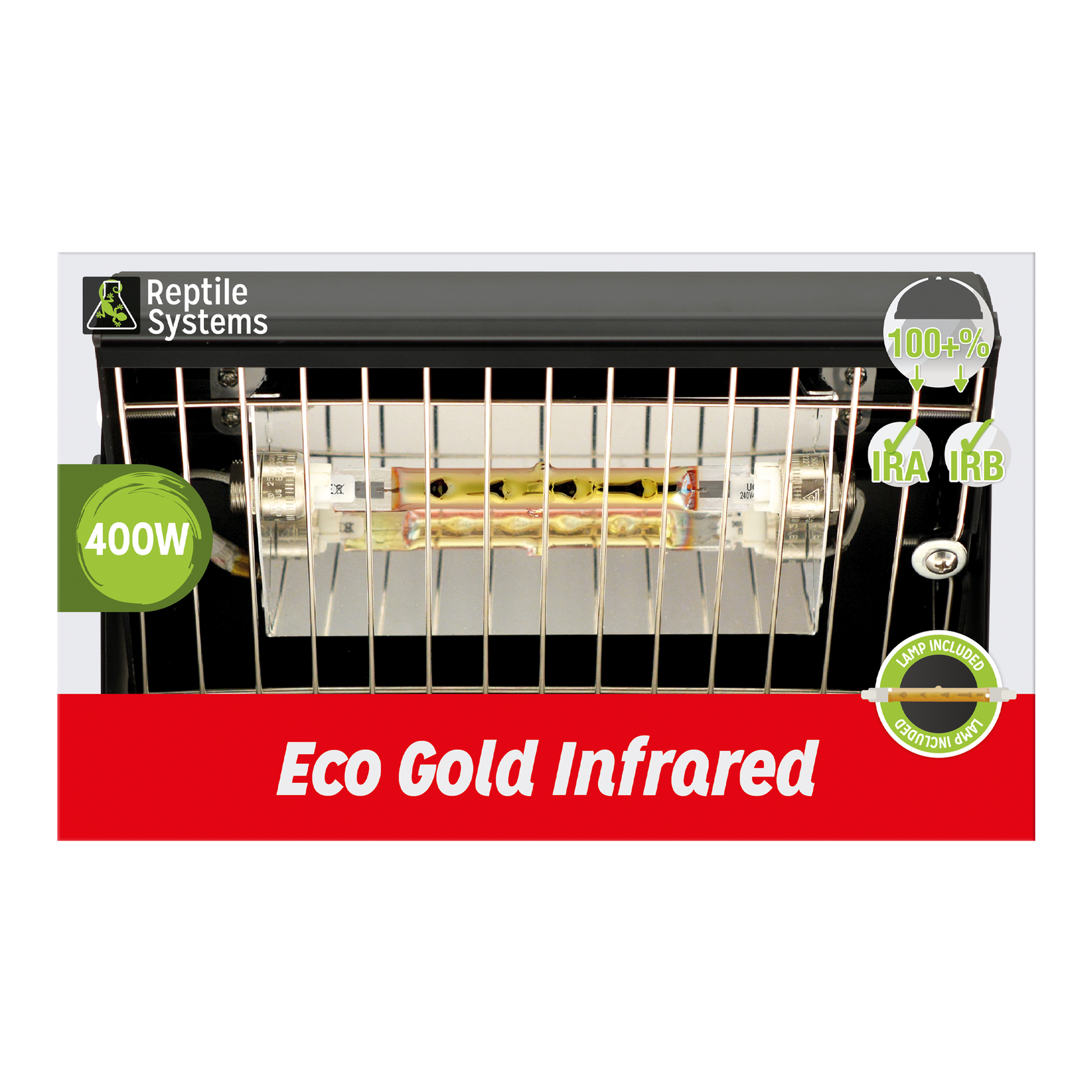 The Gold Infrared Heat Lamp from Reptile Systems uses cutting-edge infrared technology to deliver intense, energy-efficient heat with minimal visible light—perfect for maintaining a healthy, natural environment in your terrarium.