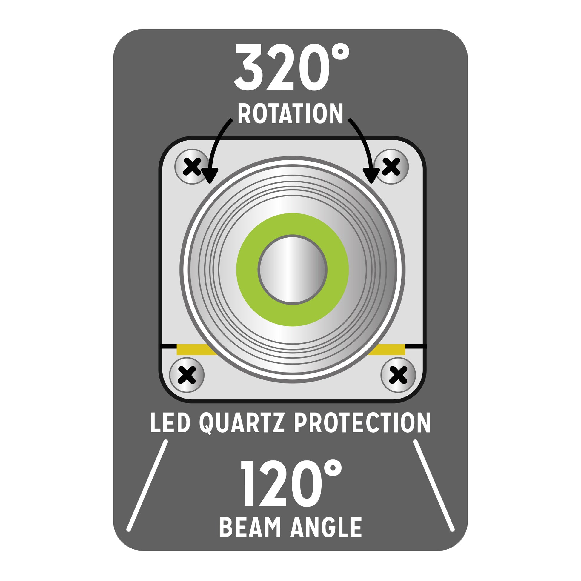 - Wide 120° beam angle for even light distribution