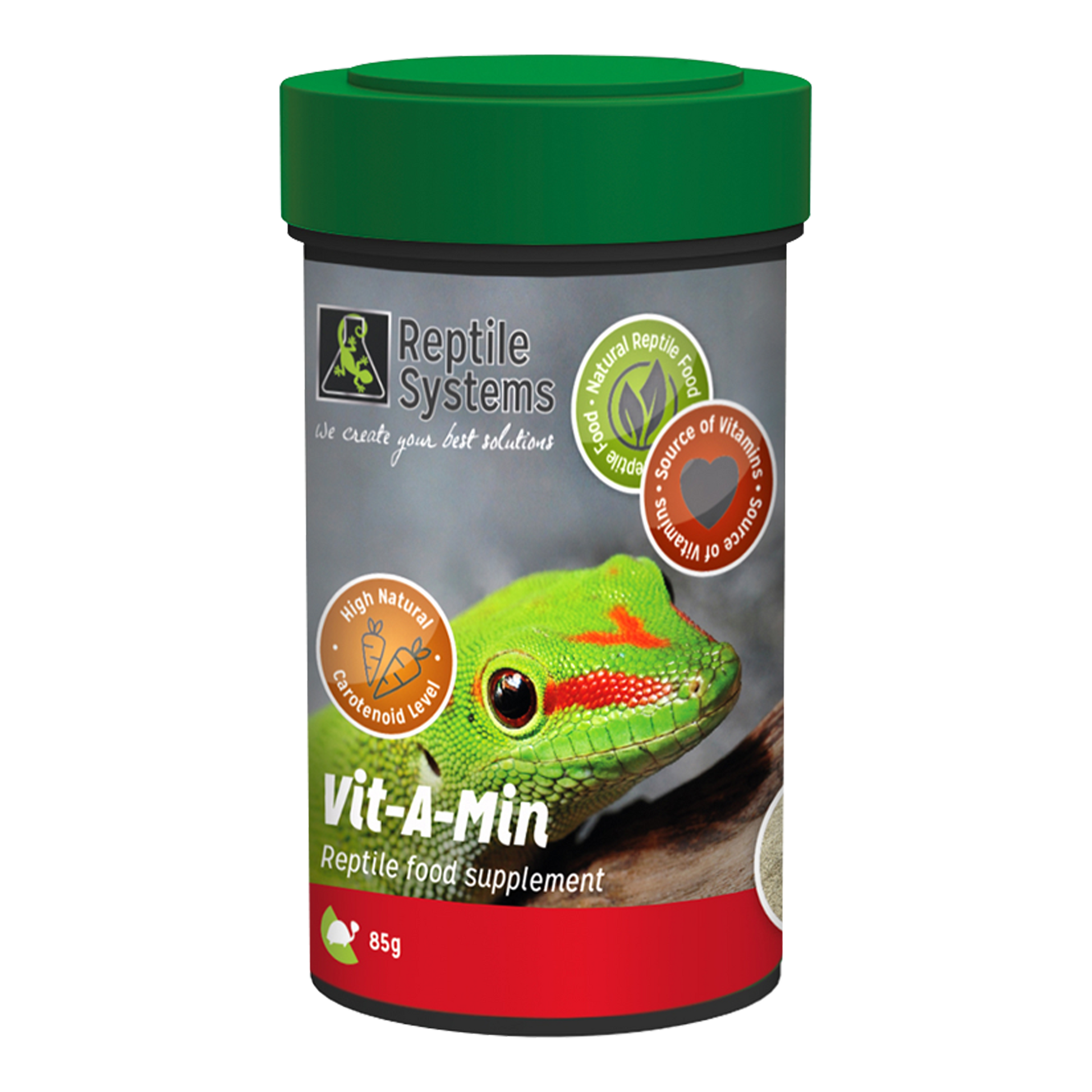 Reptile Systems Vit-A-Min Powder is a complete, premium multivitamin supplement formulated to support the overall health and vitality of reptiles, amphibians, and other exotic pets. Rich in essential amino acids, vitamins, minerals, and natural colour enhancers, this highly palatable powder acts as a powerful nutritional booster—helping to fill the gaps often found in captive diets.