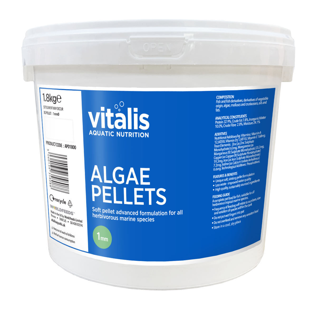 Vitalis Algae Pellets deliver a highly palatable and easily digestible diet formulated specifically for herbivorous marine species. Enriched with a unique blend of nutrient-rich marine algae, these pellets support optimal health, vitality, and natural colouration.