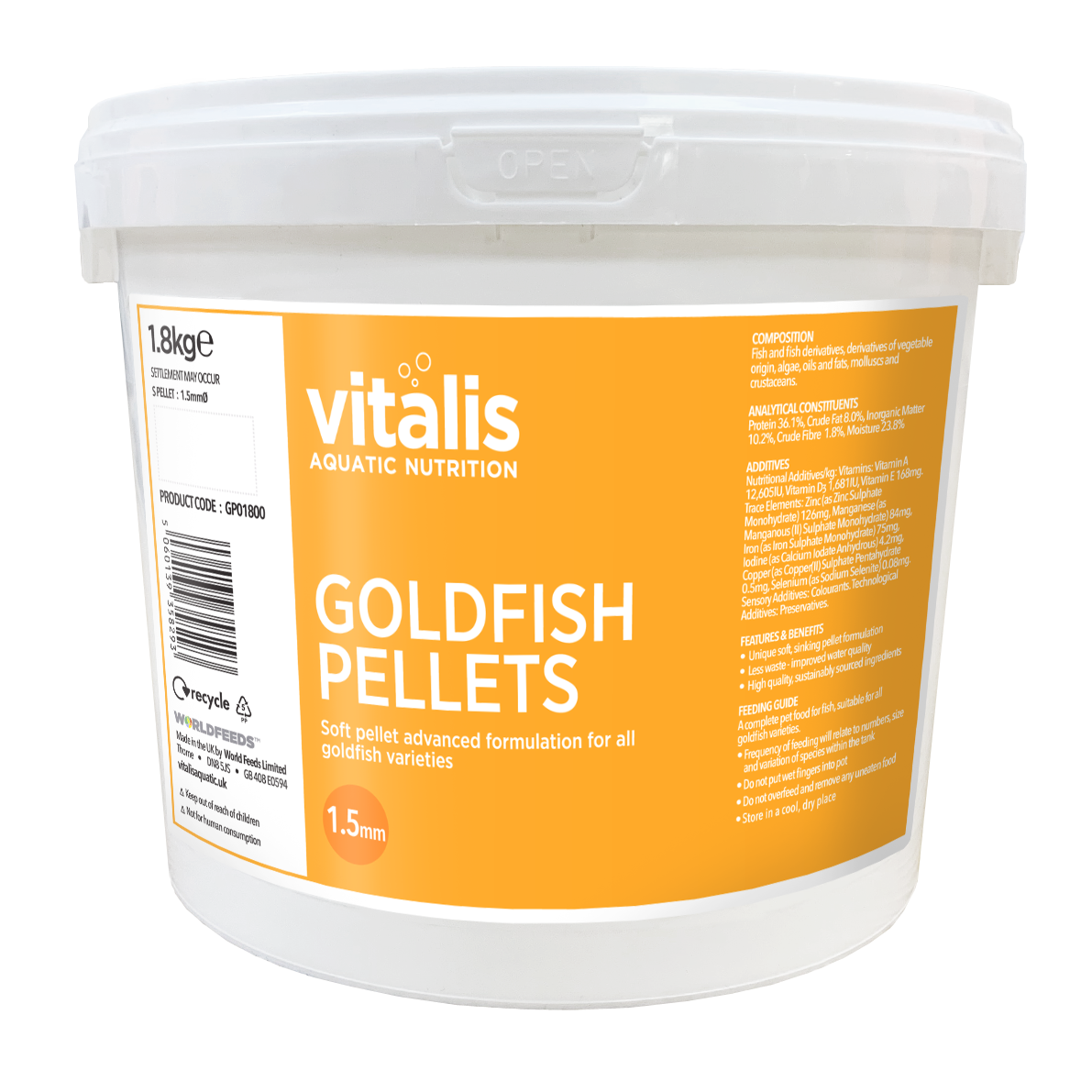 Designed to sink slowly, the 1.5mm pellets encourage a natural feeding behaviour and are gentle on the digestive system—making them ideal for both fancy and common goldfish.