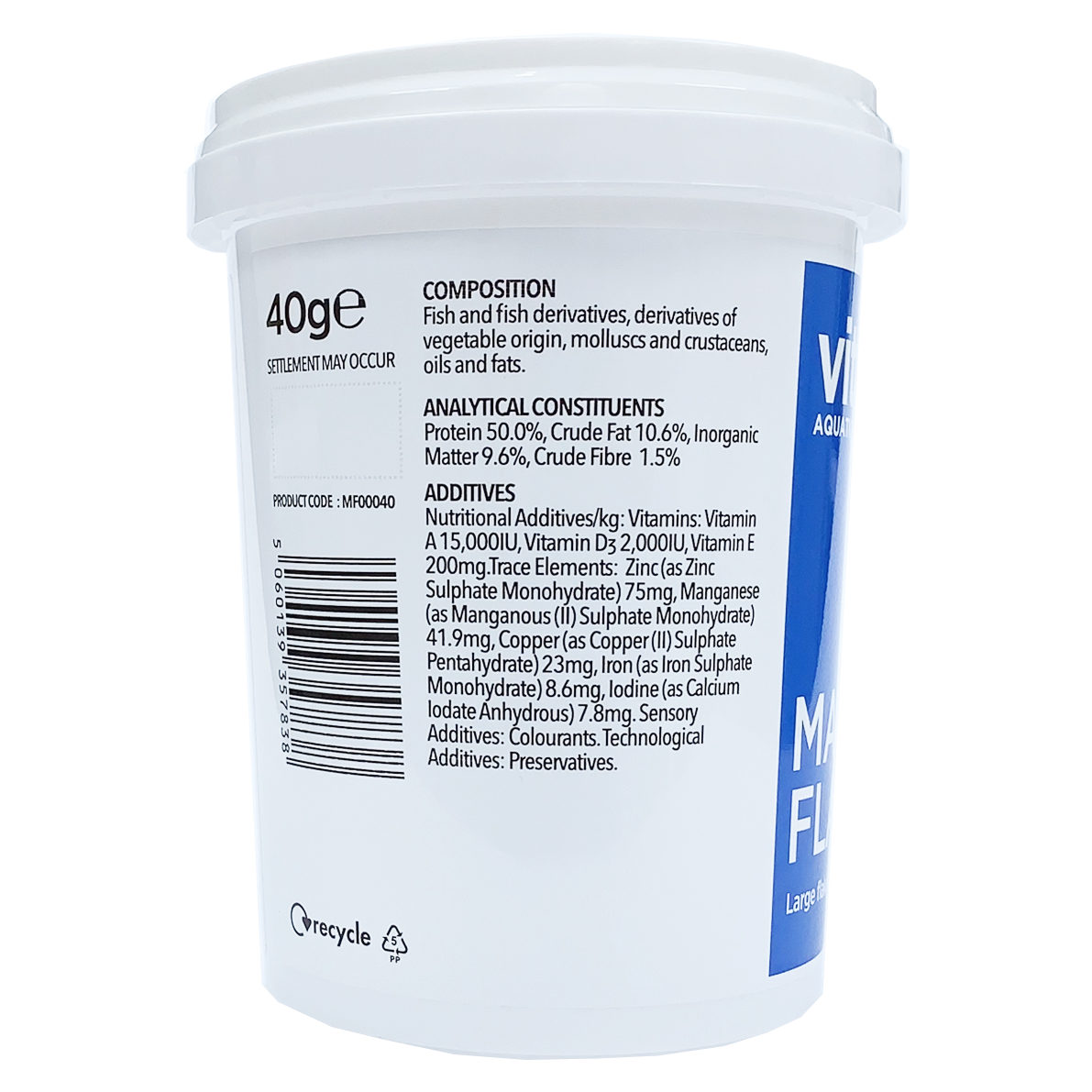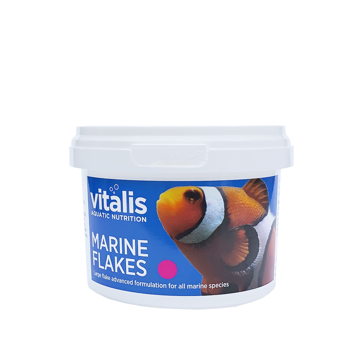 Vitalis Marine Flakes are a complete and highly digestible diet, expertly formulated to support the health and vitality of all tropical marine species. Featuring a premium blend of marine proteins—including whole fish meal, molluscs, and crustaceans—this balanced flake delivers essential nutrients to maintain peak condition and vibrant colouration.