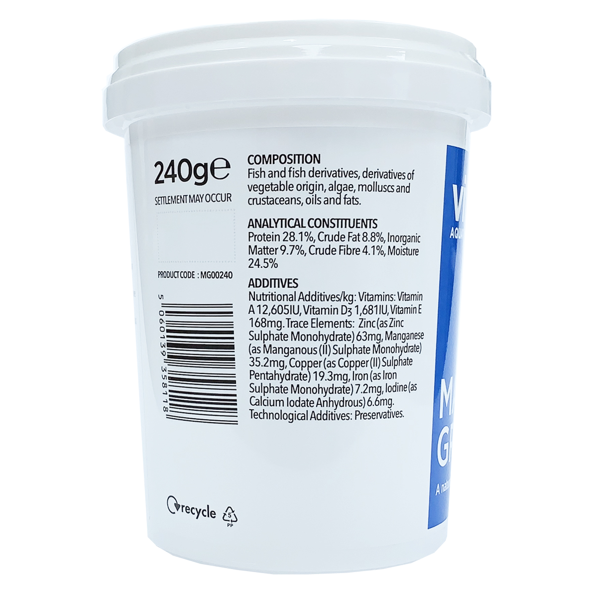Formulated with a tailored blend of marine-based ingredients, vitamins, and minerals, Marine Grazers provide balanced, digestible nutrition while reducing waste. Their water stability allows fish to graze throughout the day, supporting optimal health, colour, and activity.
