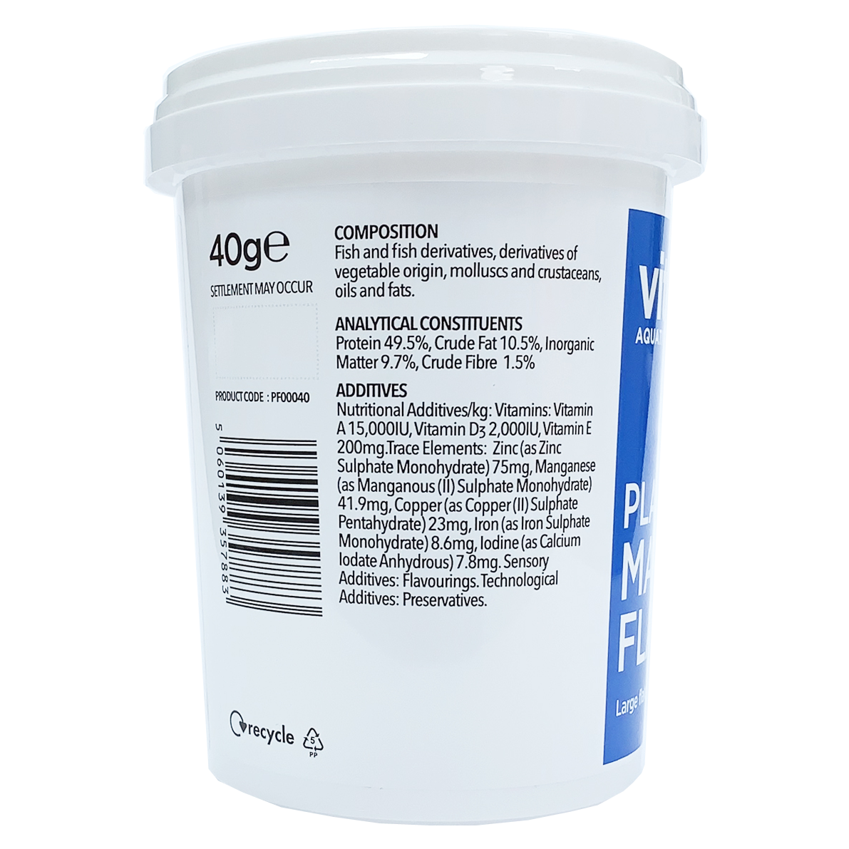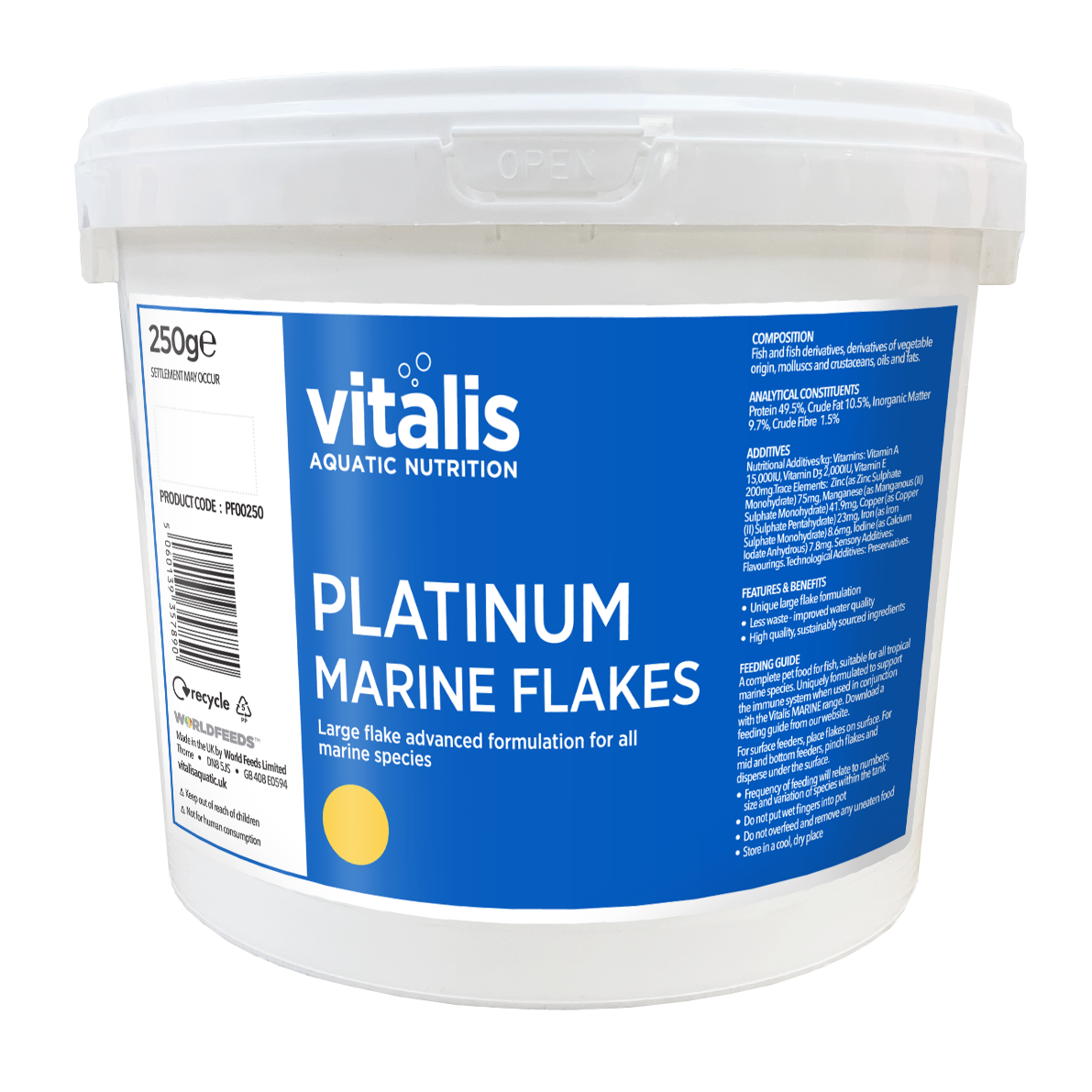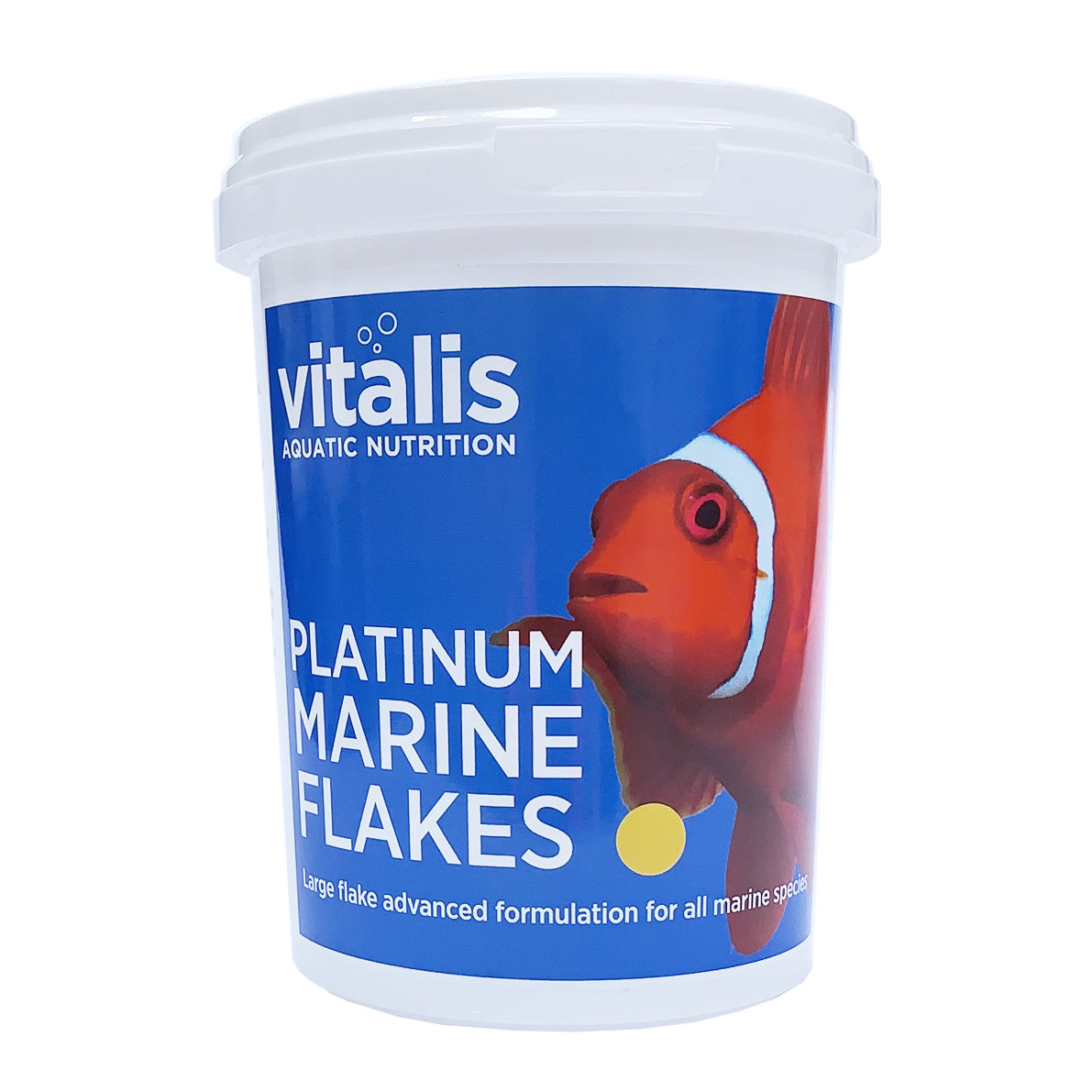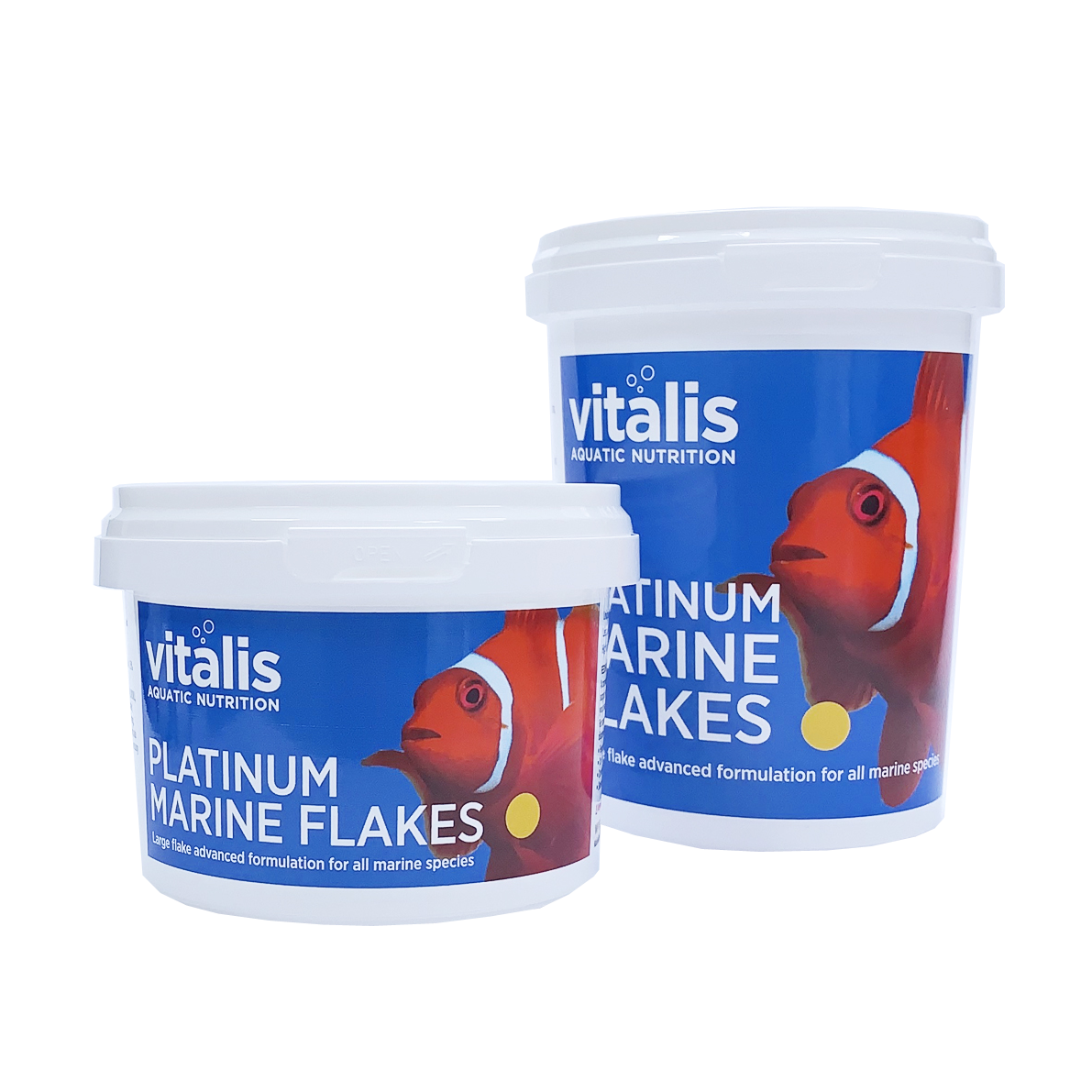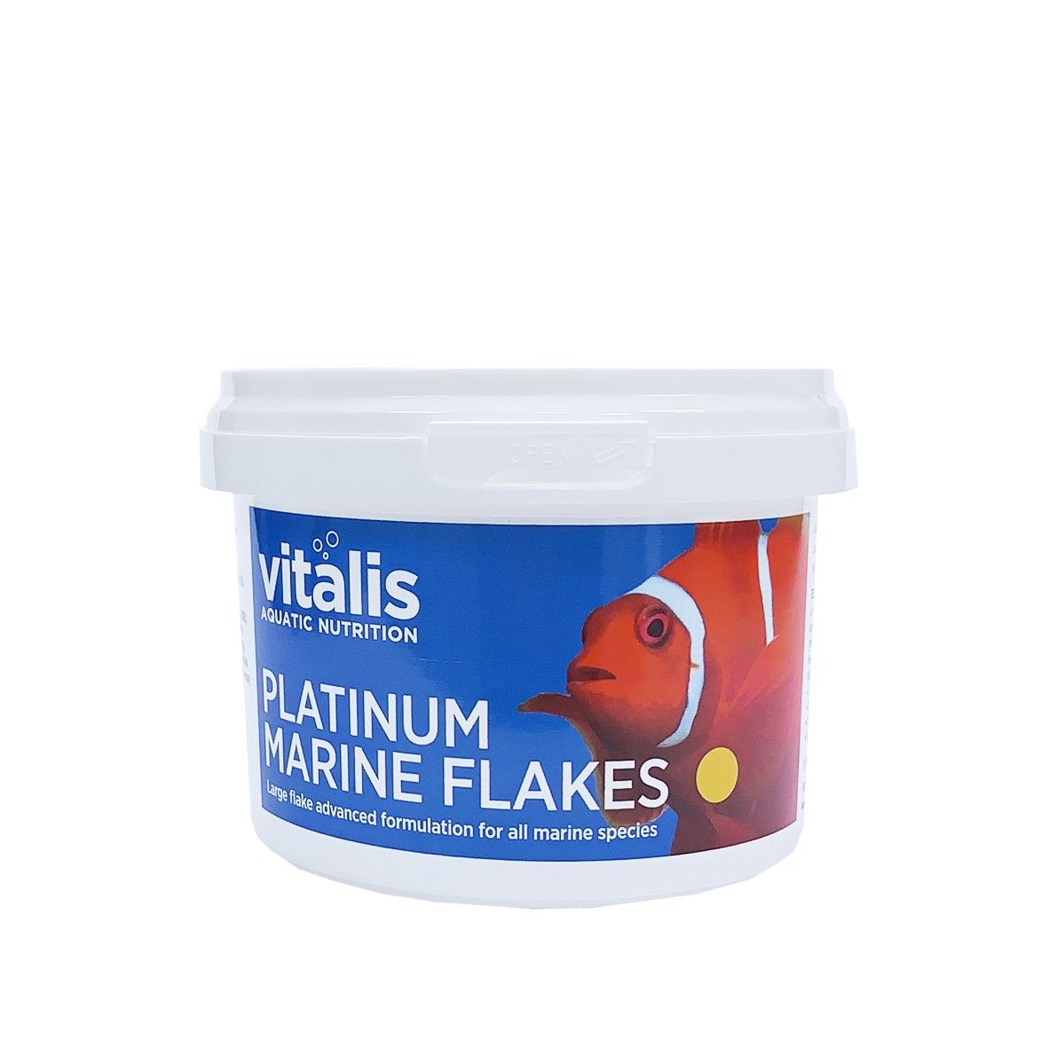Vitalis Platinum Marine Flakes offer a complete and highly digestible diet, specially formulated to promote peak health, vitality, and condition in tropical marine fish. Building on the trusted foundation of our core Marine Flake formula, this enhanced diet includes key functional ingredients—1-3 beta glucans and bioflavonoids—known to help strengthen the immune system and support resilience against stress and disease.