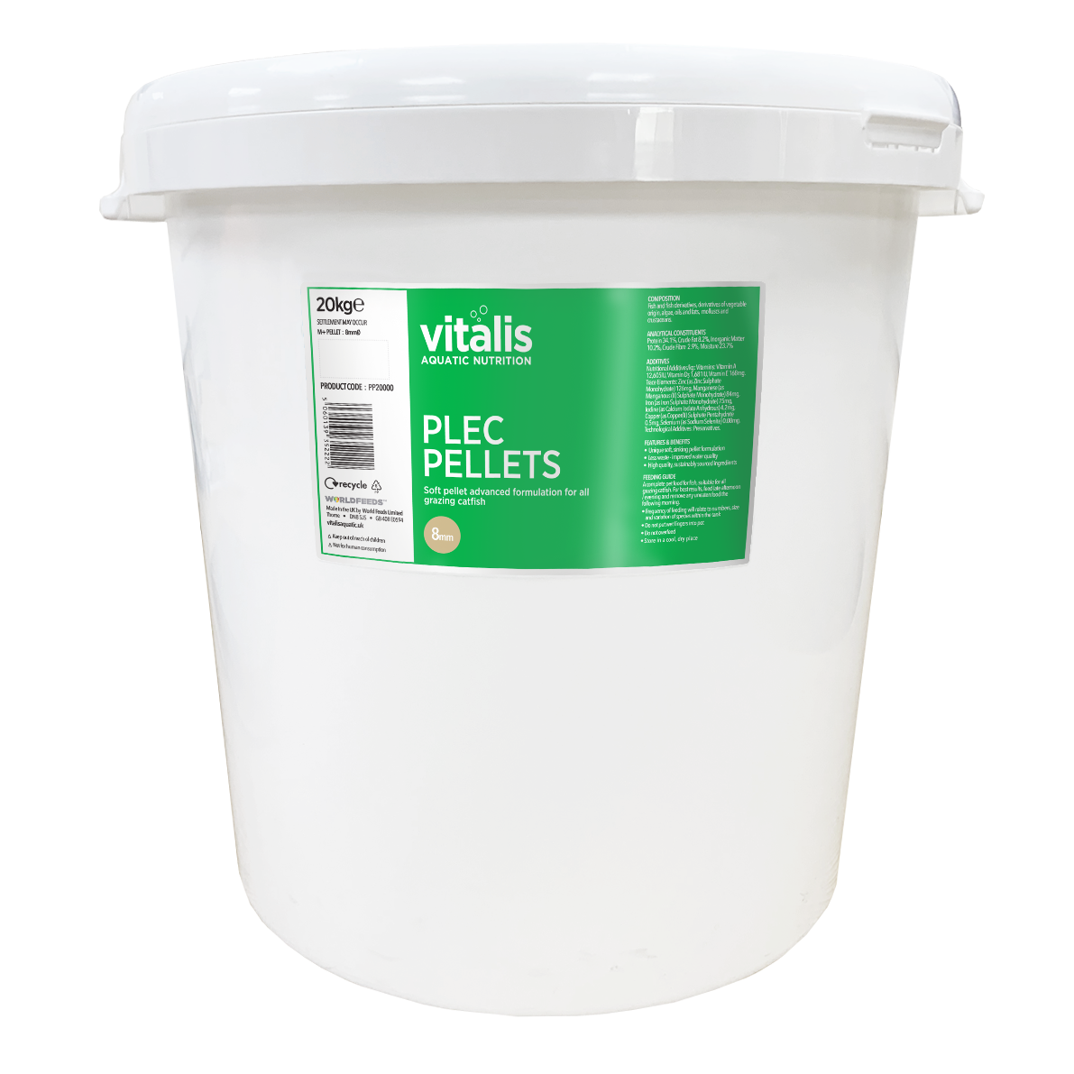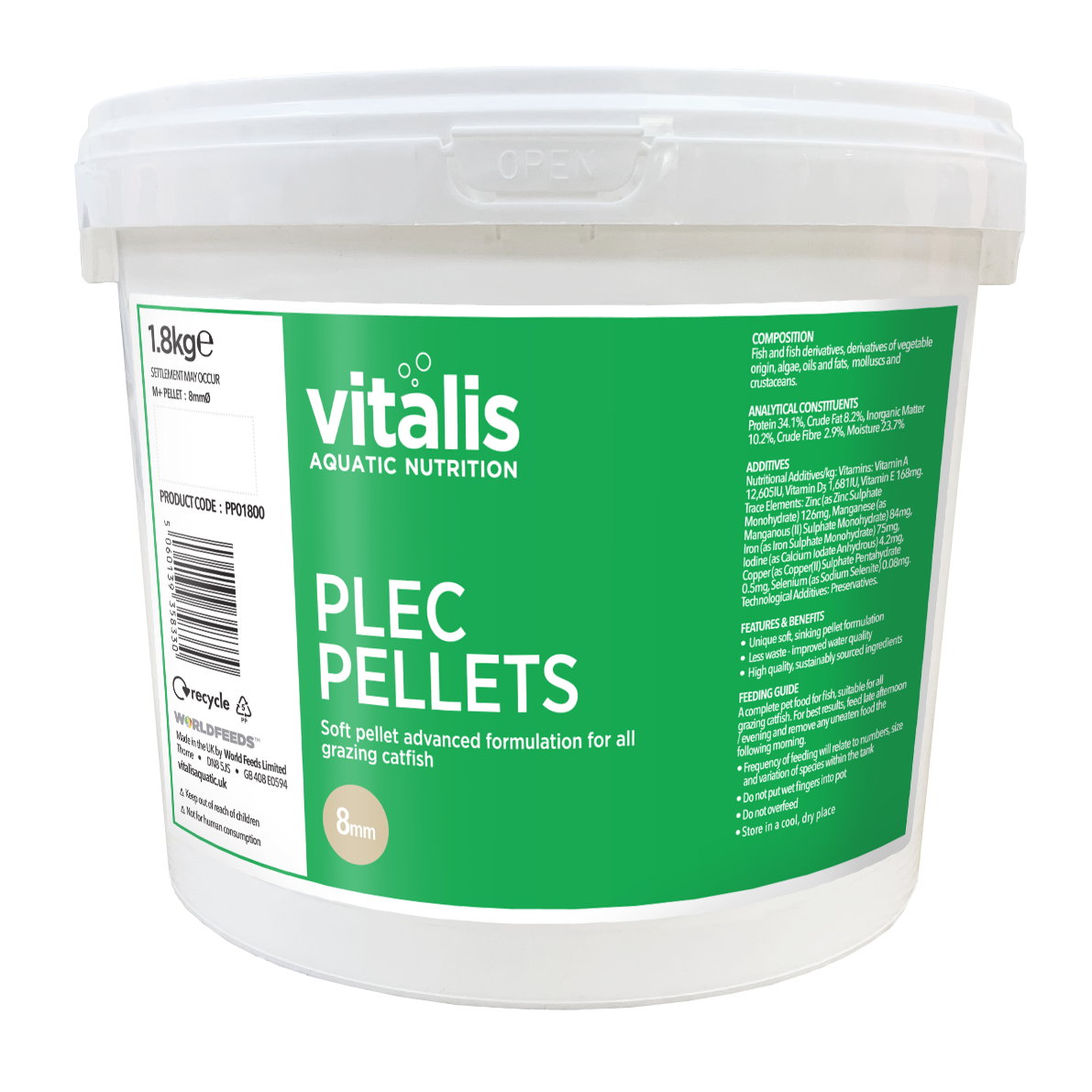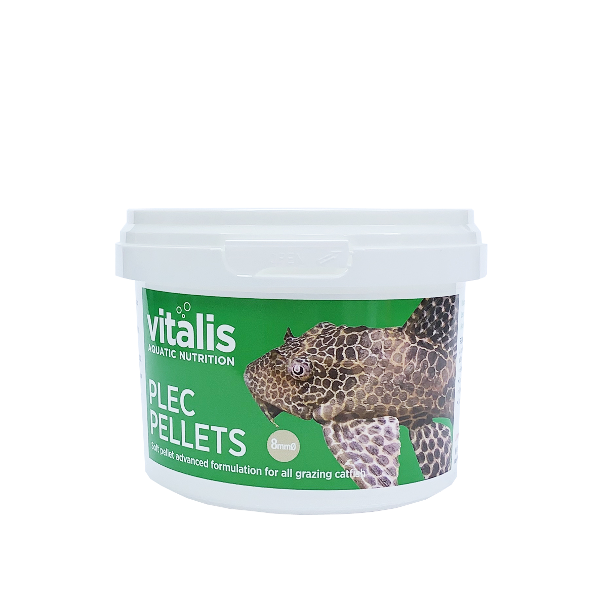 Vitalis Plec Pellets are a complete, highly digestible food tailored for bottom-dwelling species of the Loricariidae family. Rich in natural algae and formulated to support a healthy grazing behaviour, these 8mm soft pellets slowly sink, allowing fish to feed at their own pace throughout the day.